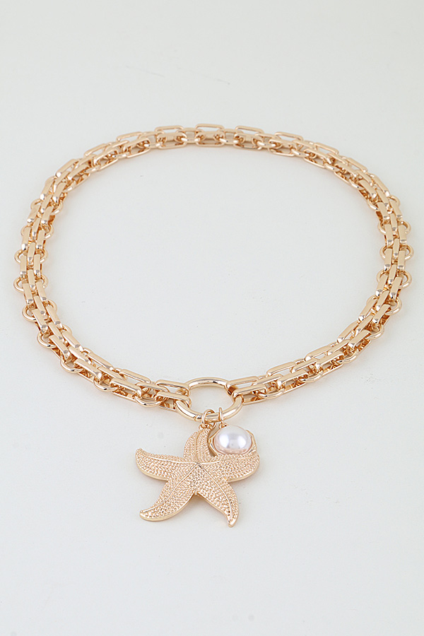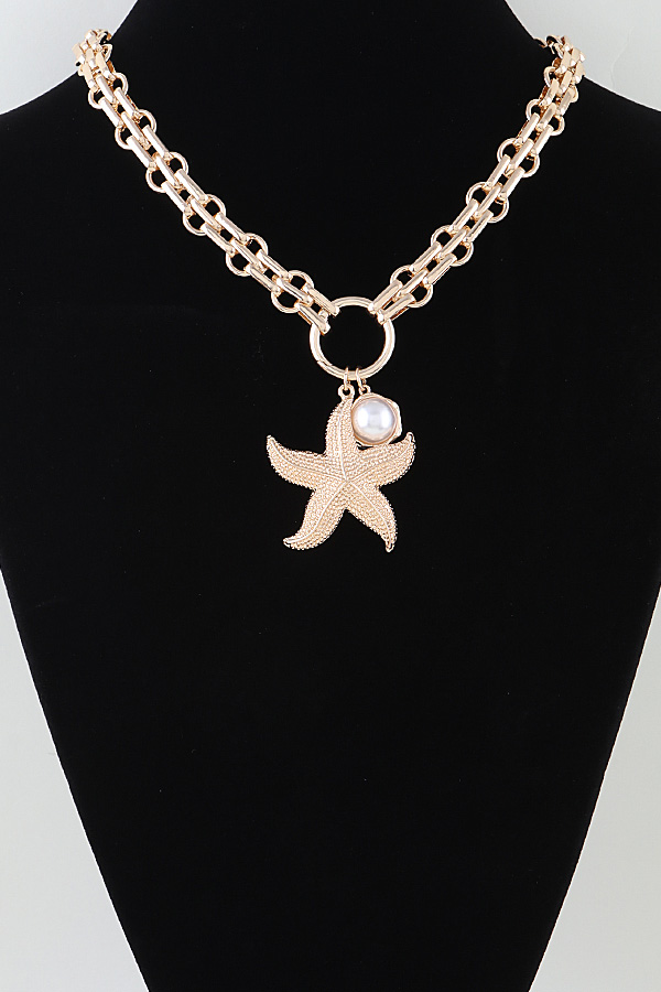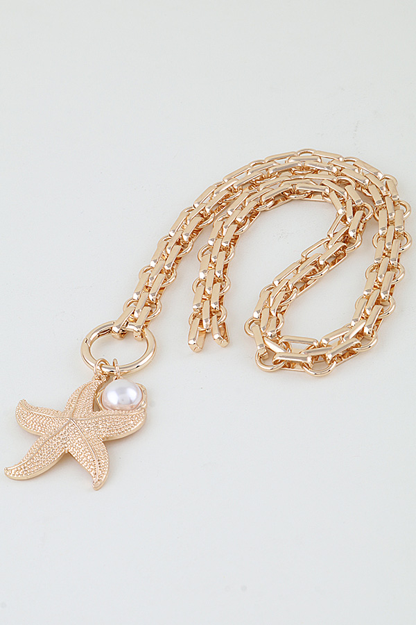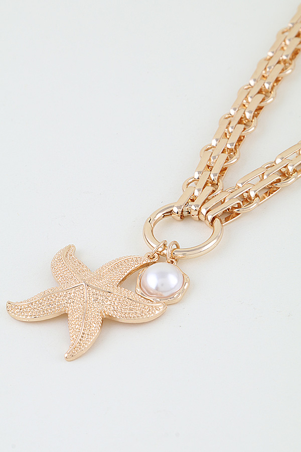 • * Hammered Starfish Pendant Toggle Chain Necklace