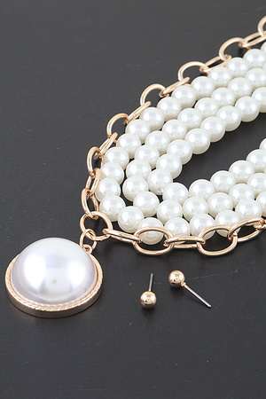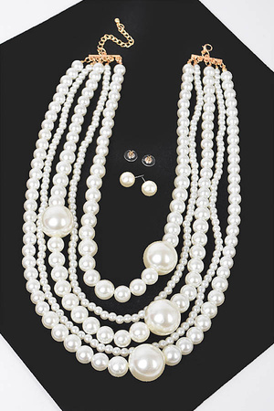 Multi Pearl Layered Necklace W/Earring