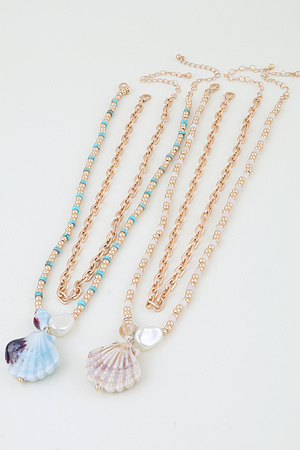 Multi Seashell Chain Beaded Necklace