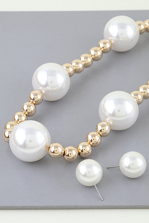 Faux Pearl Double Layered Necklace W/Earring