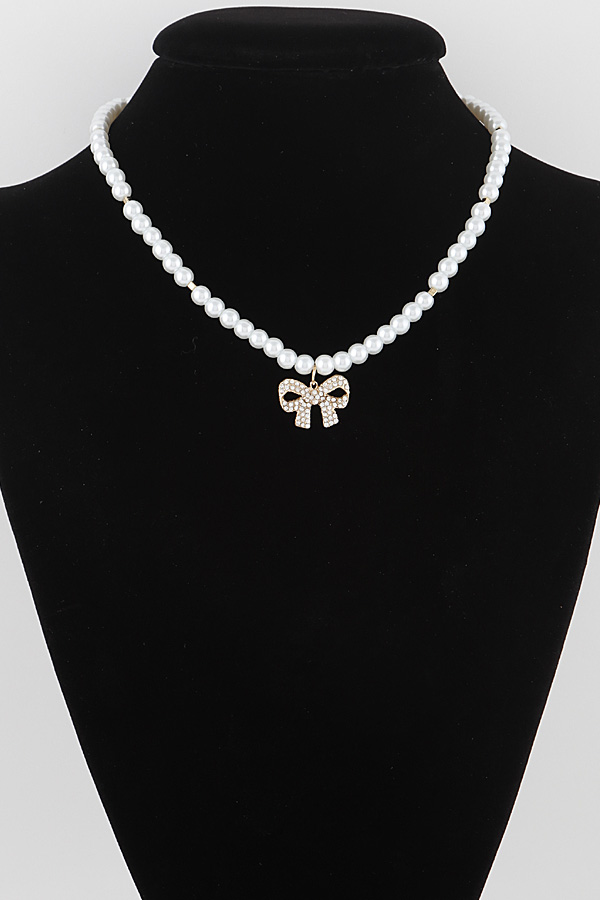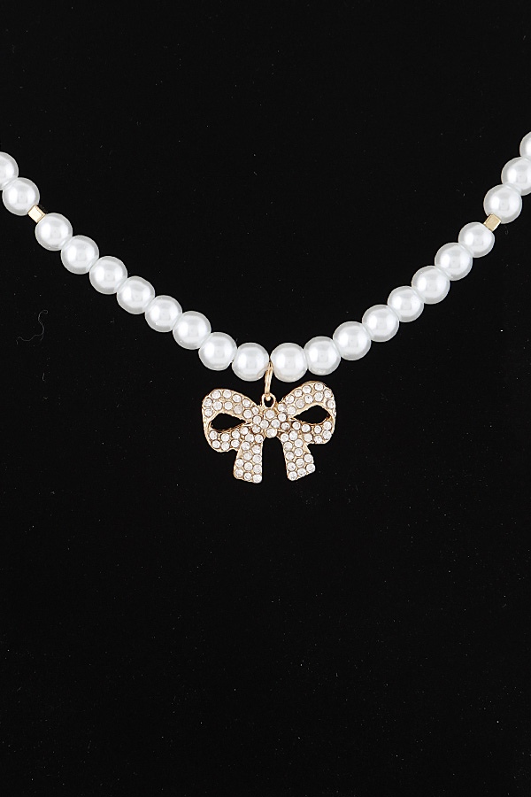 - * White Pearl Bow Necklace