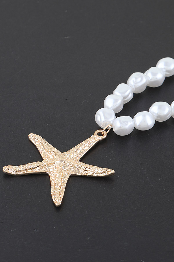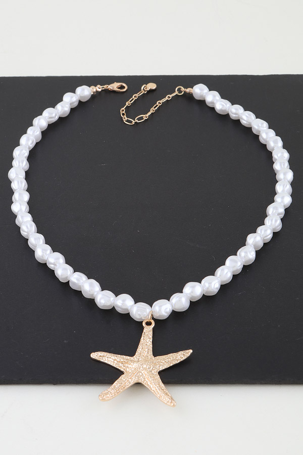 - * This Shiny Starfish Pearled Necklace from H&D Accessories is a charming and whimsical piece. It features a strand of lustrous, irregular - shaped pearls that form the base of the necklace. Hanging from the center is a detailed, gold - toned starfish pendant, which adds a touch of nautical charm and sparkle.