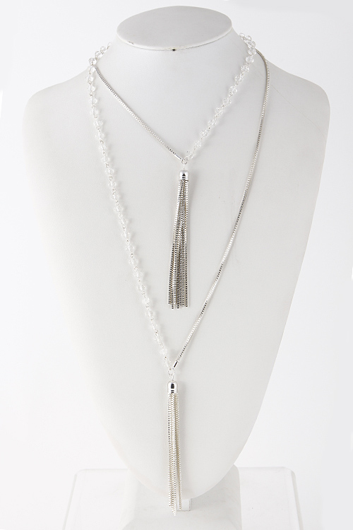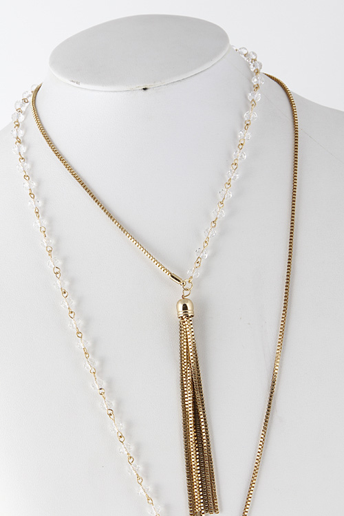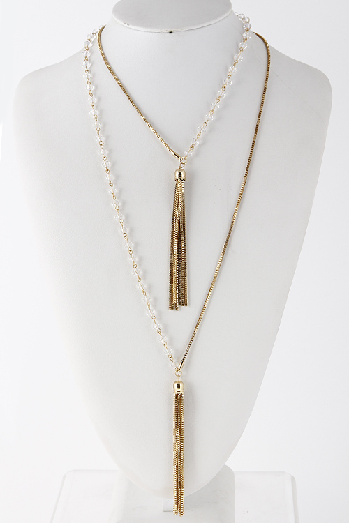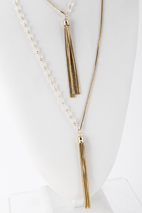 • * Bead Chain Half And Half Chain Tassel Necklace 5EAG5 * 26 x 3.5" approx.