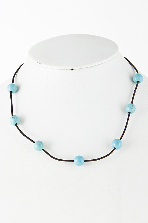 - * Turquoise Stone Bead Inserted Single Hinge Necklace 5DDA2 * 18" approx.