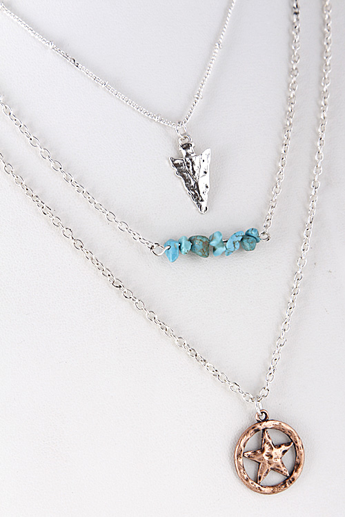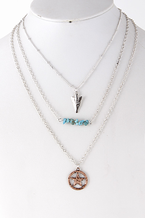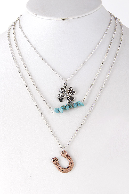 • * Clover Stone Charm Pendant Layered Necklace 5EBF1 * 20" approx.