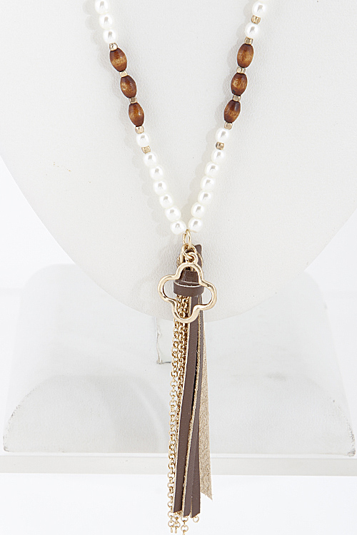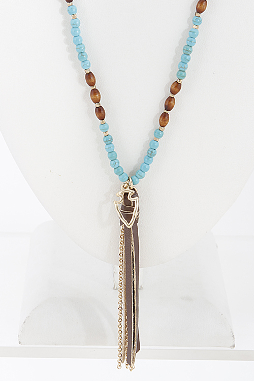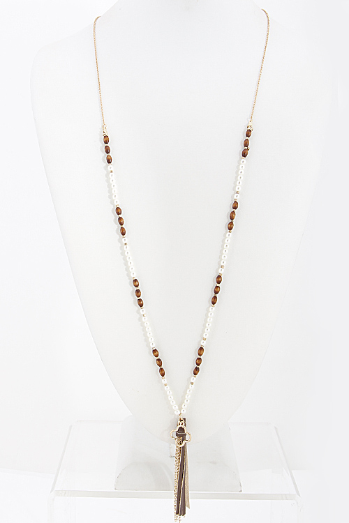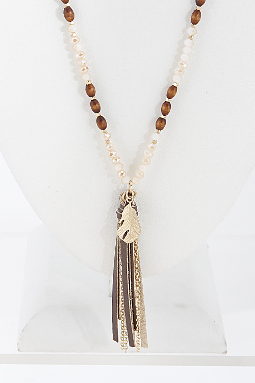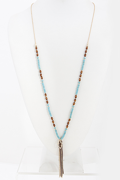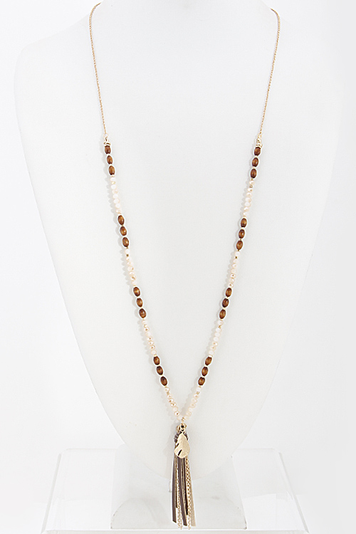 • *Bead Drop Necklace With Tassel And Charm 6BAE1 *32 X 3" approx.