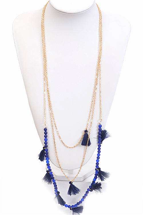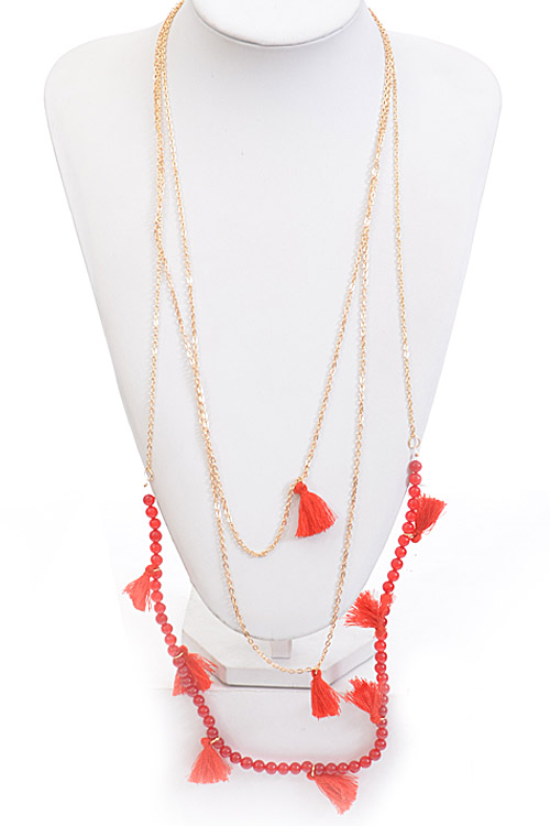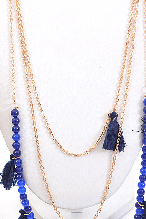 • * Bead Tassel Dangle Three Layered Necklace * 20 x 1.5" approx.