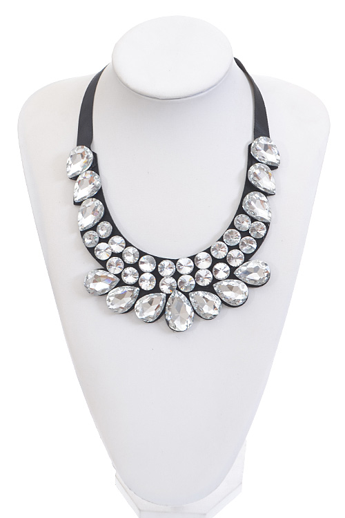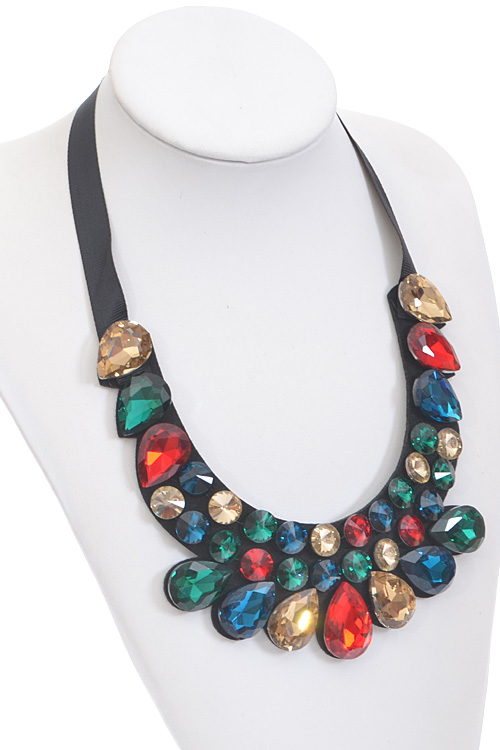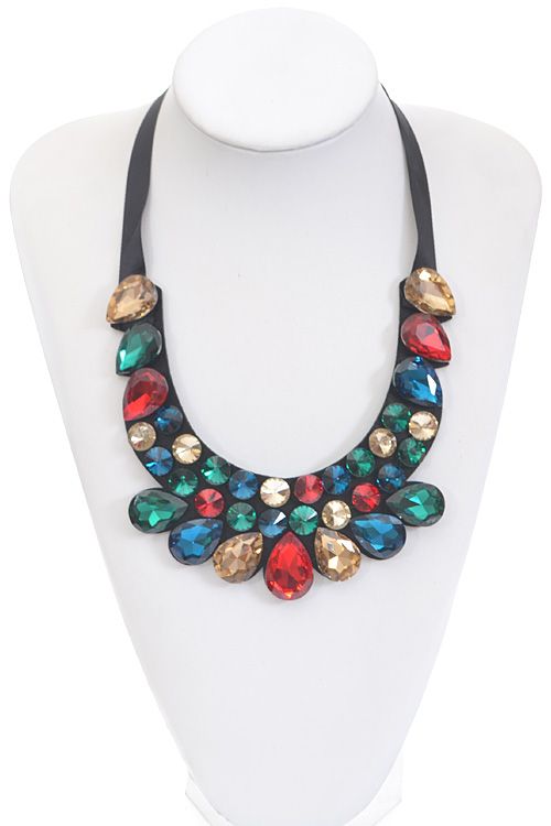 - * Jewel Gem Attached Cloth Necklace * 16" approx.