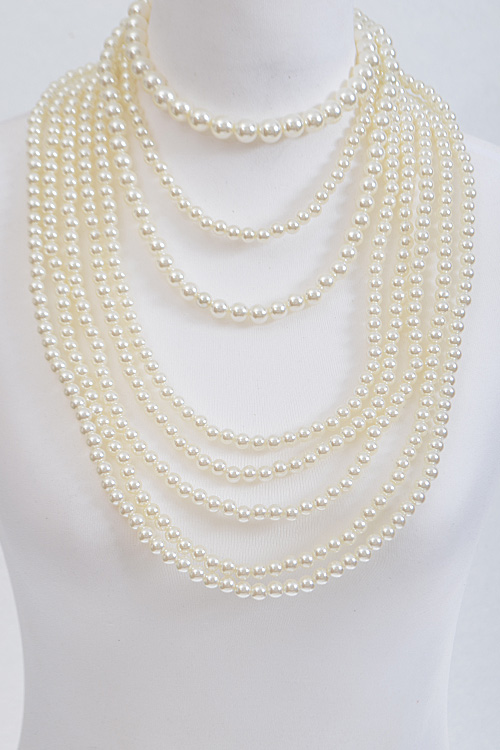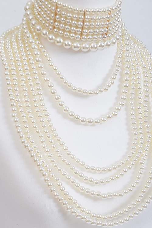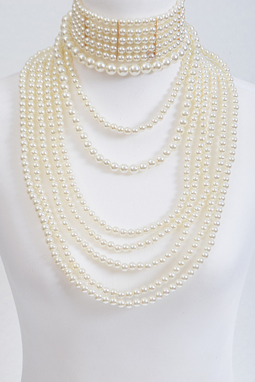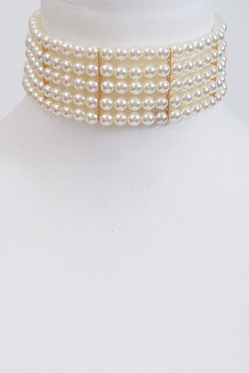 • * Faux Pearl Choker Statement Necklace * 16 x 1.75" approx.