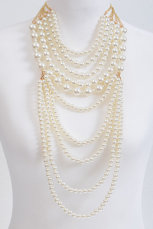 • * Elegant Layered Faux Pearl Necklace * 19.5" approx.