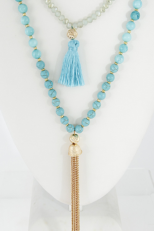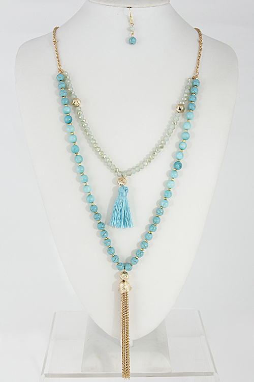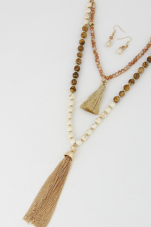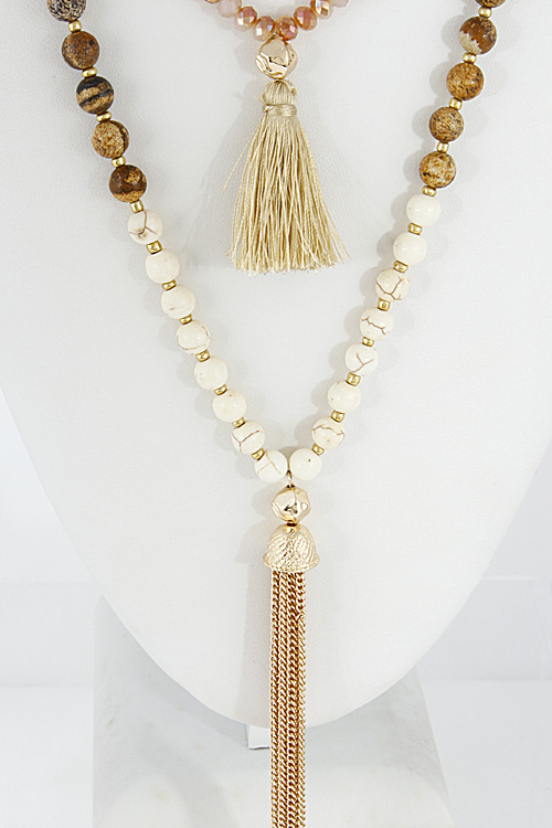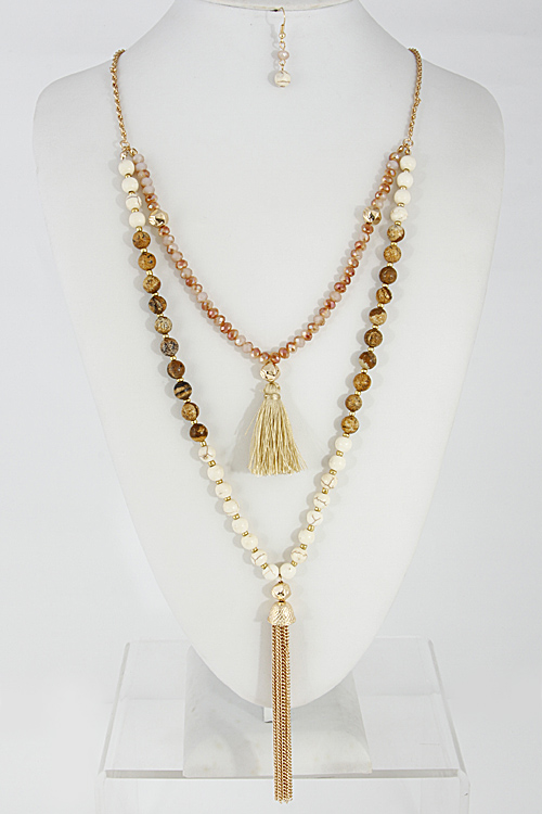 - * Multi Layered Beaded Necklace Set With Tassel 6DCE6 * 24" approx.