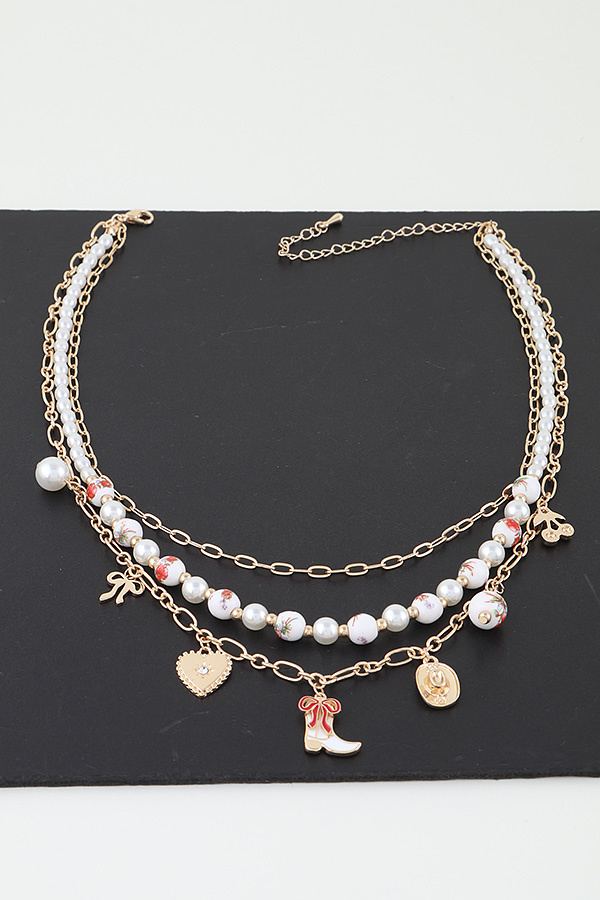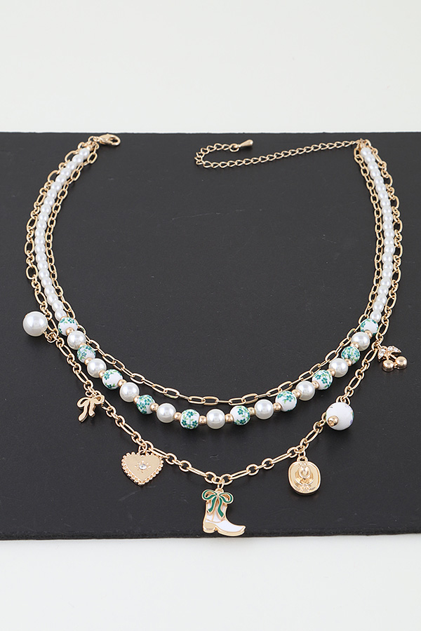 • * Multi Antique Wild West Charms Chain Necklace
