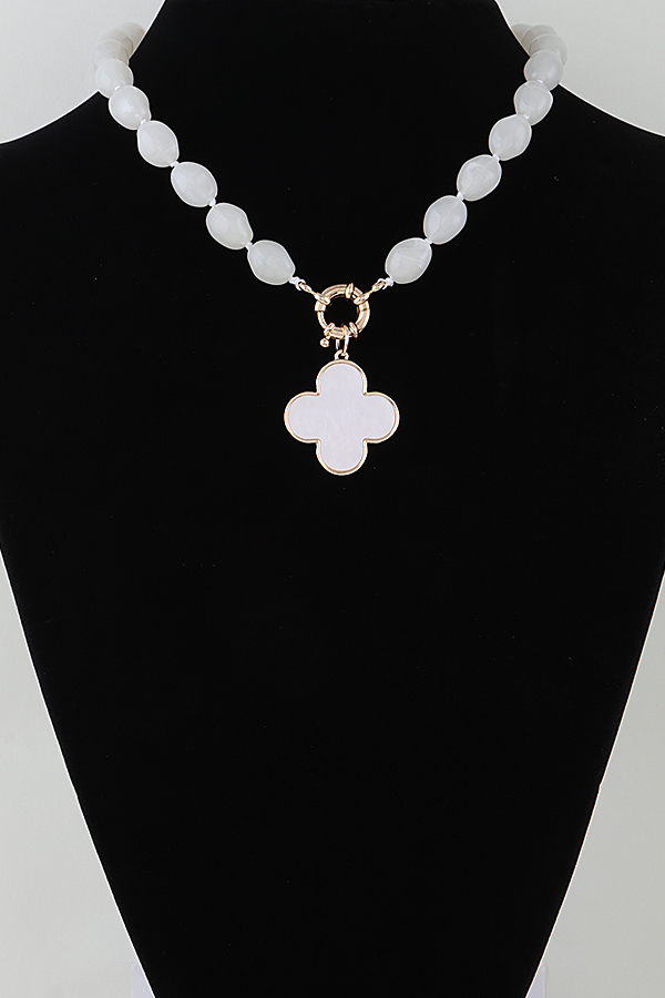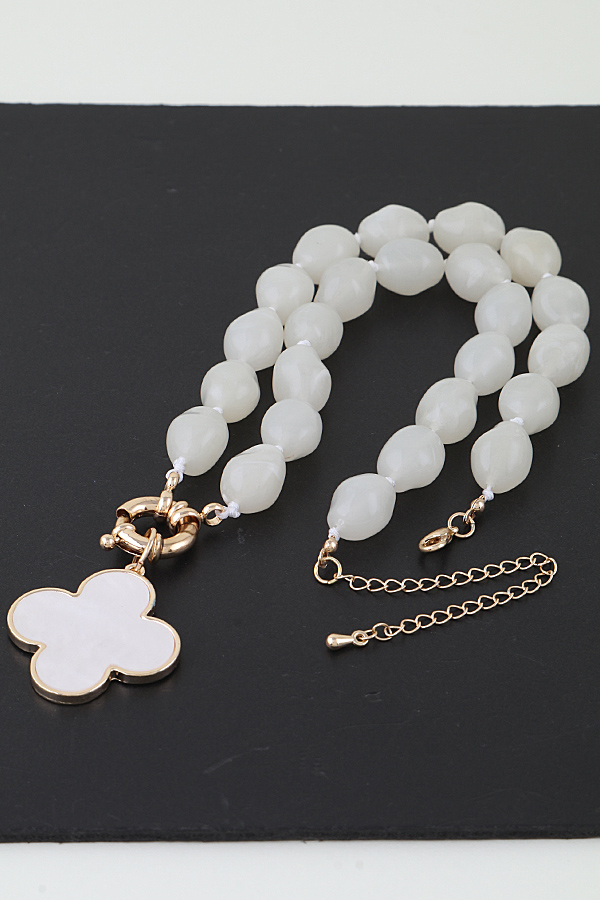 • * Marble Stone Clover Beaded Necklace