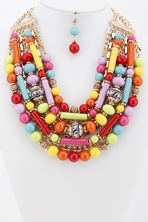 • *Tribal Mixed Collar Statement Necklace Set 5LAD * 20" approx.