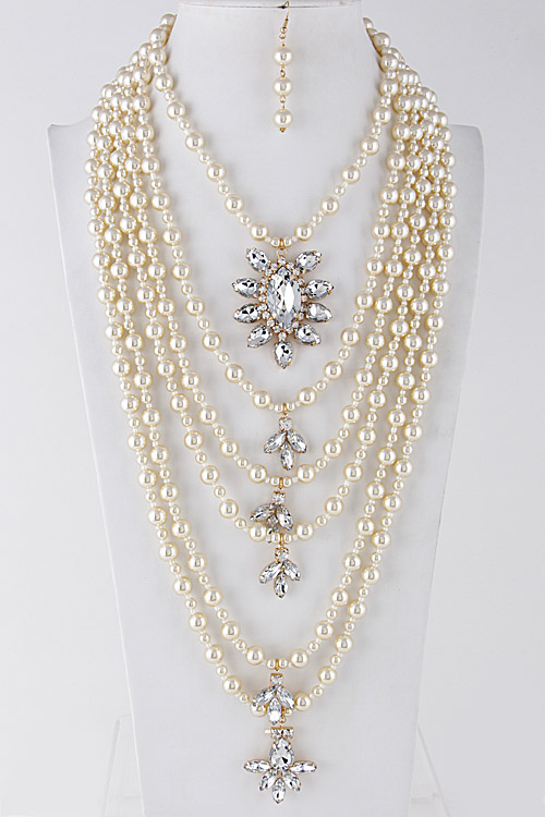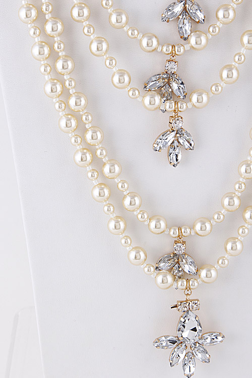 • * Fashionable Multi Layer Pearl with Shiny Rhinestones Necklace 6KBB * 18" approx.