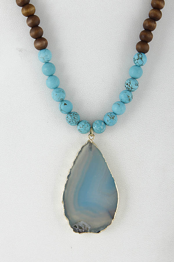 • * Stone Bead Antique Stone Pendant Necklace 7JCA9