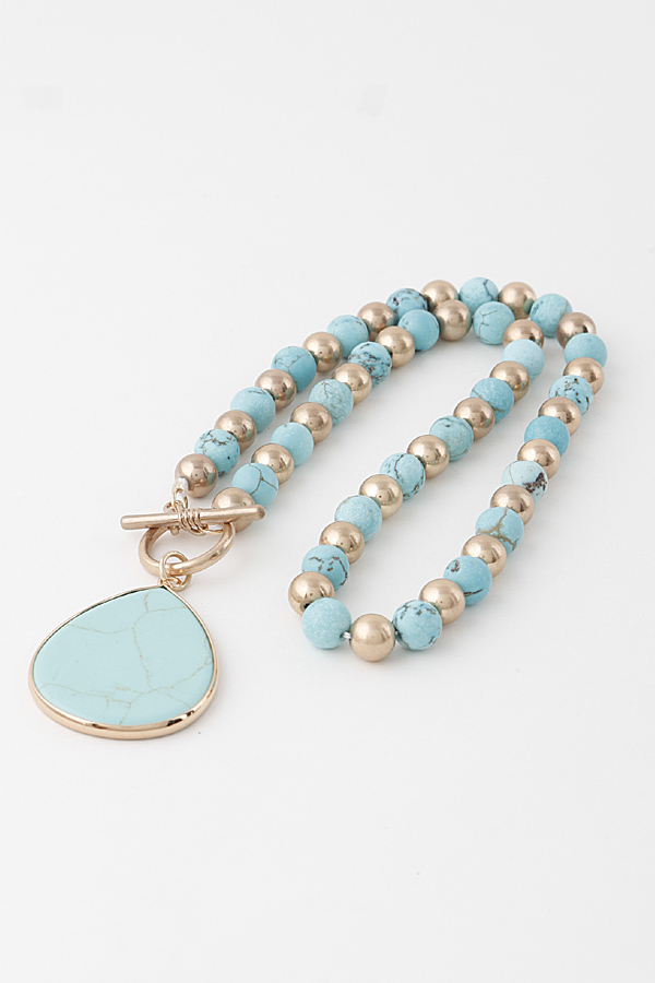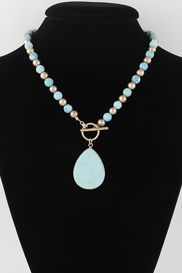 - * Stone Teardrop Toggle Beaded Necklace