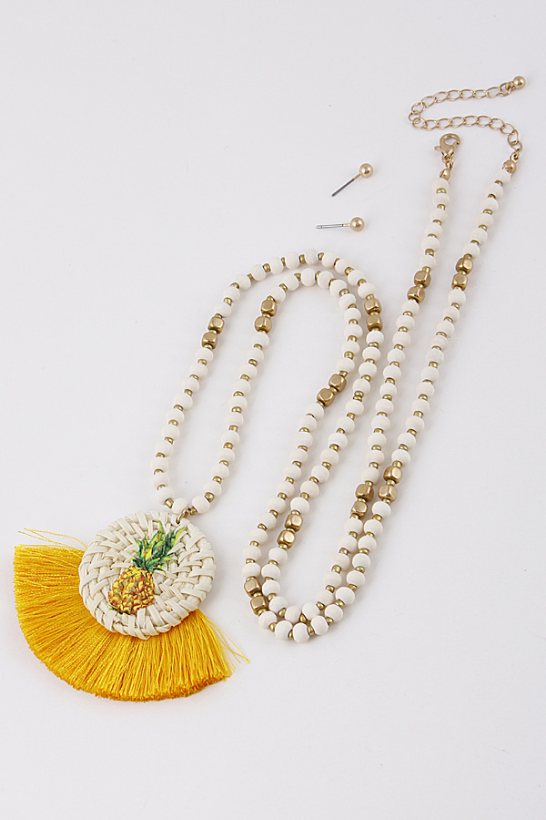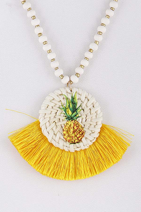 - * Long Tropical Pineapple Tassel Necklace 9ACB7