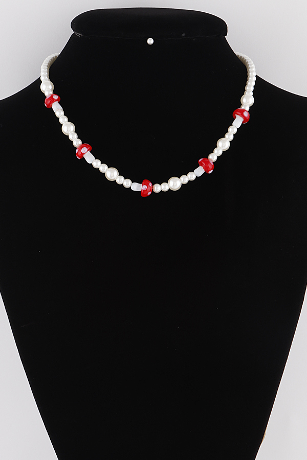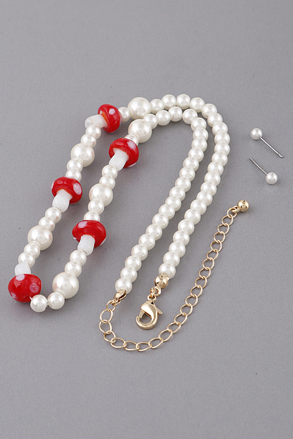 - * Pearled Mushroom Charms Necklace