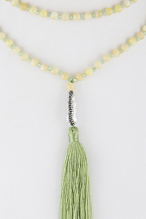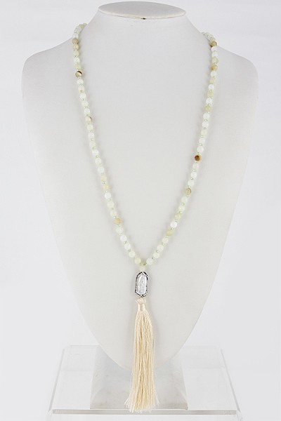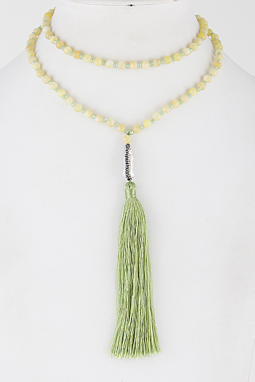 - * Daily Long Bead Necklace With Stone And Tassel 6LBB4 * 30" approx.