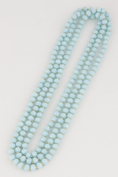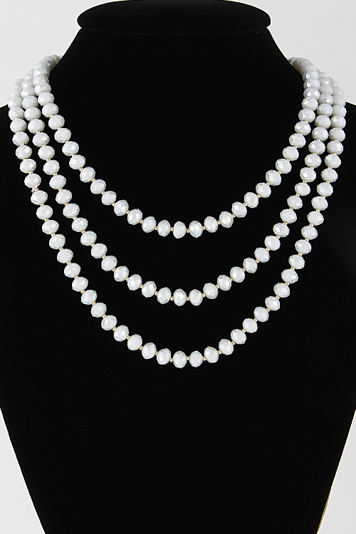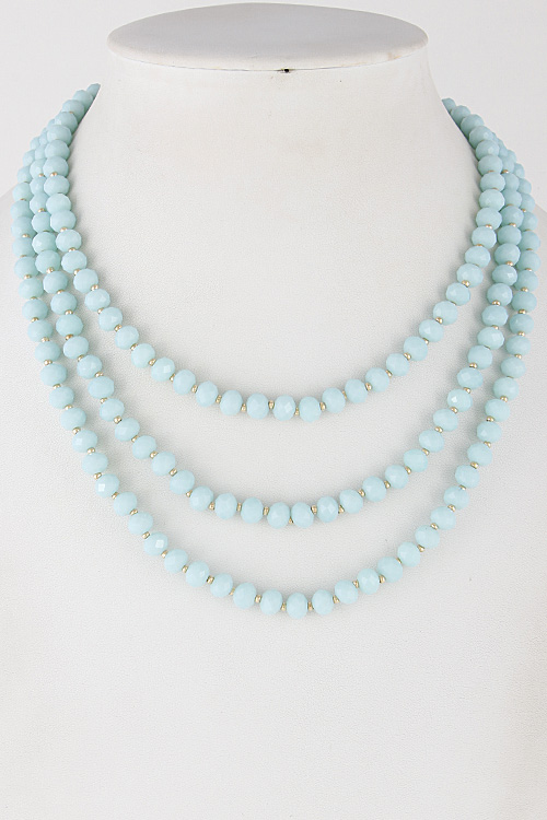 • * Three Line Beaded Stone Necklace 7BAC3 * 56" approx.