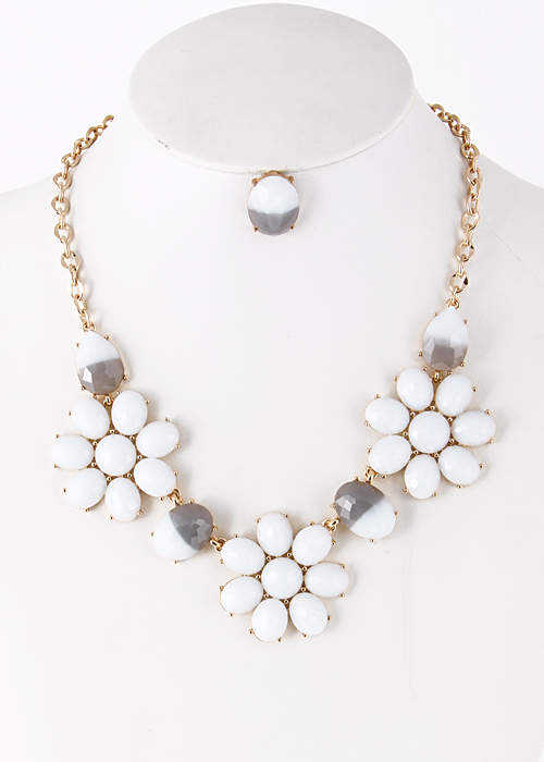 - * Gradient Floral Beaded Statement Necklace 5ECC10 * 10 x 4" approx.
