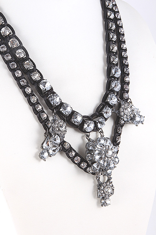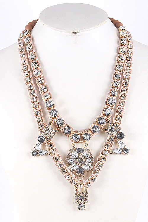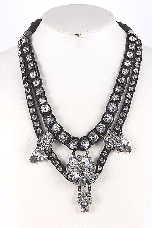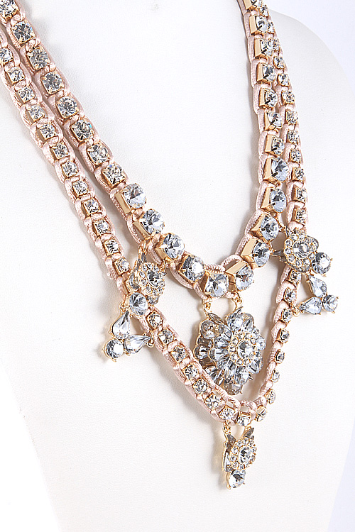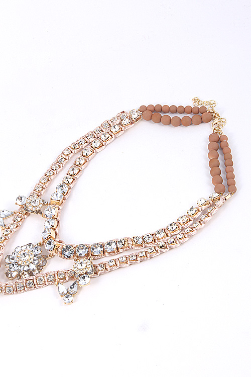 • * Chain Wrapped Rhinestone Bead Necklace 5FBB12 * 20" approx.