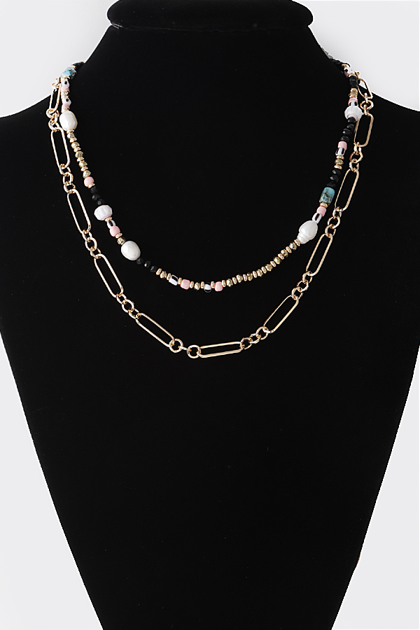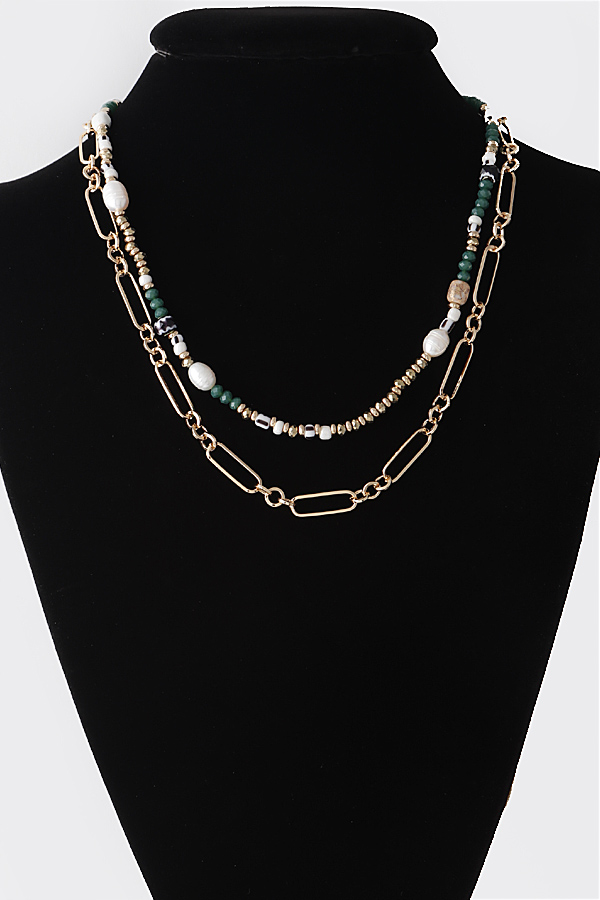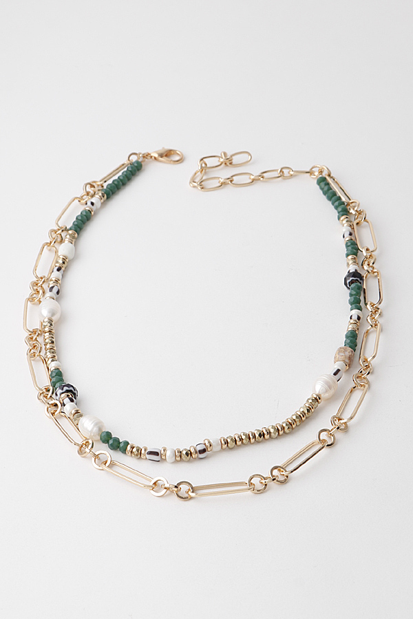 - * Double Layered Bead N Chain Necklace