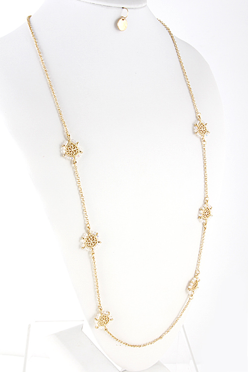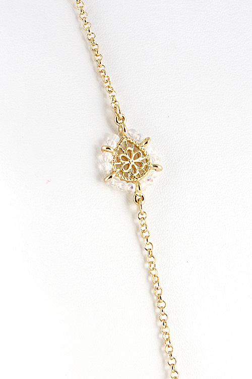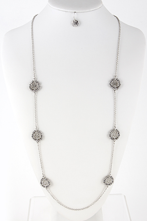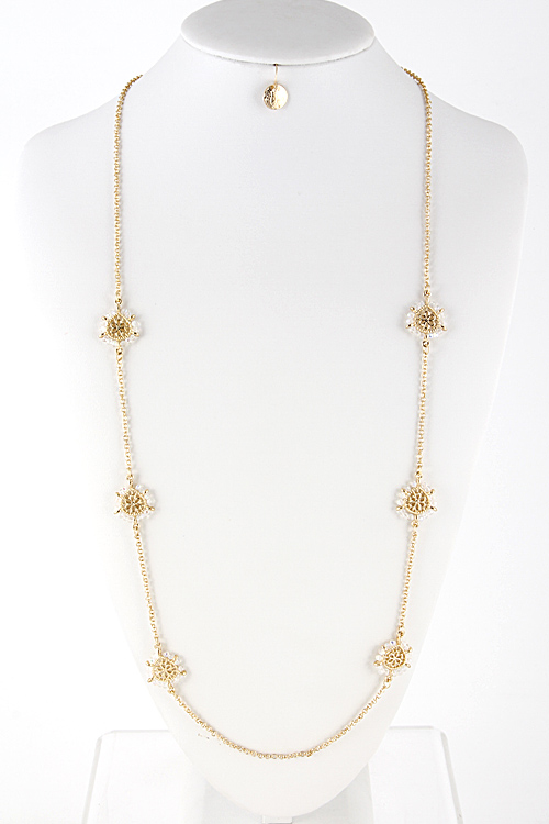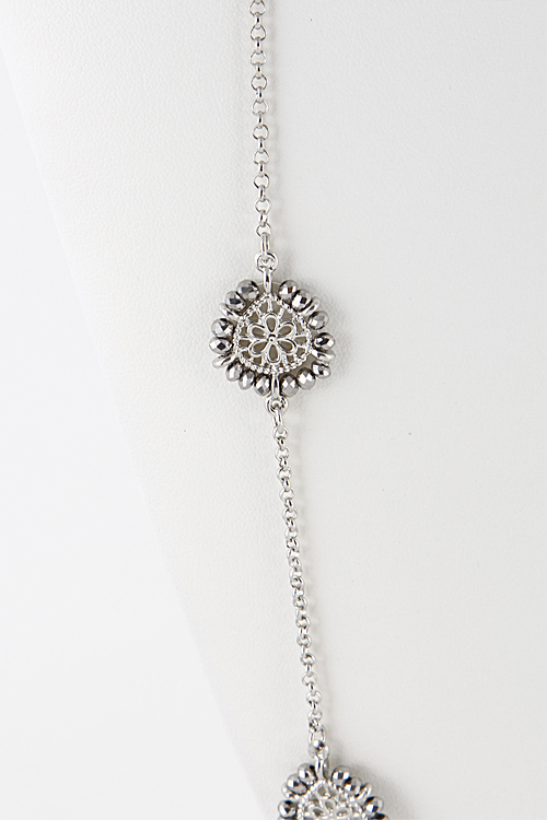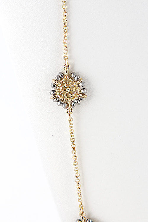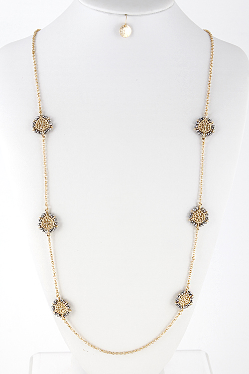 - * Flower Pendant Cutout Bead Rimmed Chain Necklace 5FBJ5 * 36 x .5" approx.