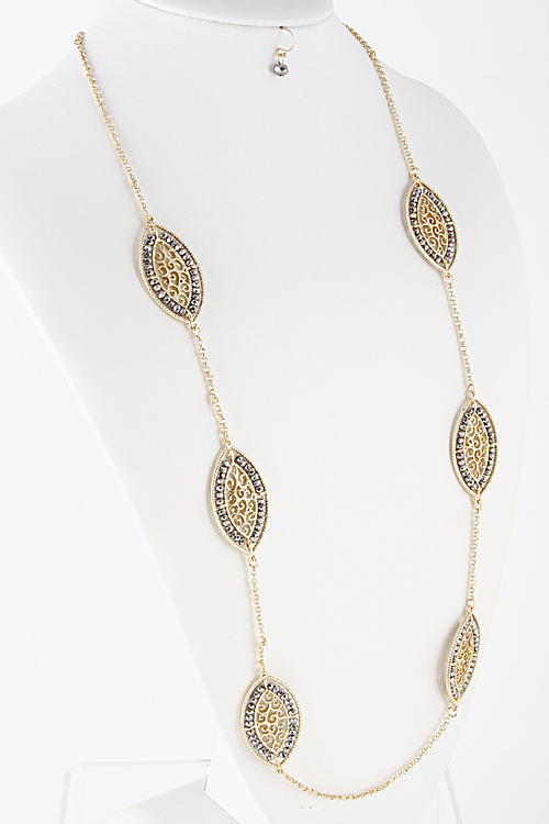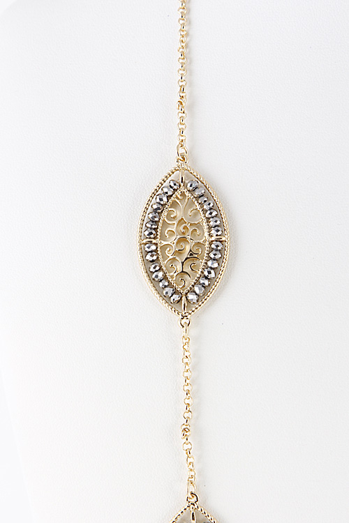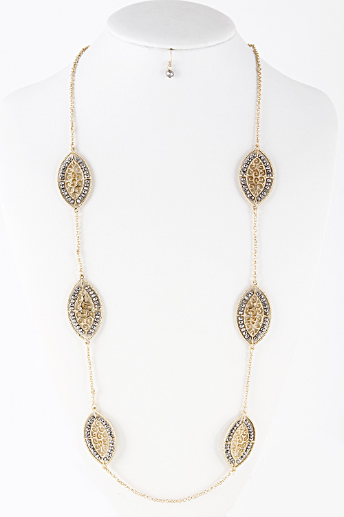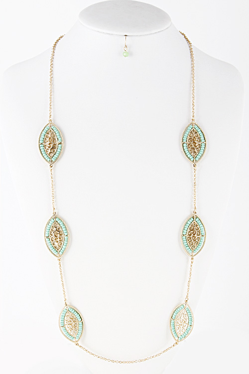• * Sharp Oval Filigree Cutout Bead Detailed Necklace 5FBJ7 * 36 x 1.5" approx.