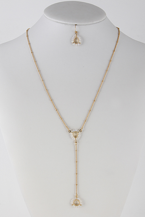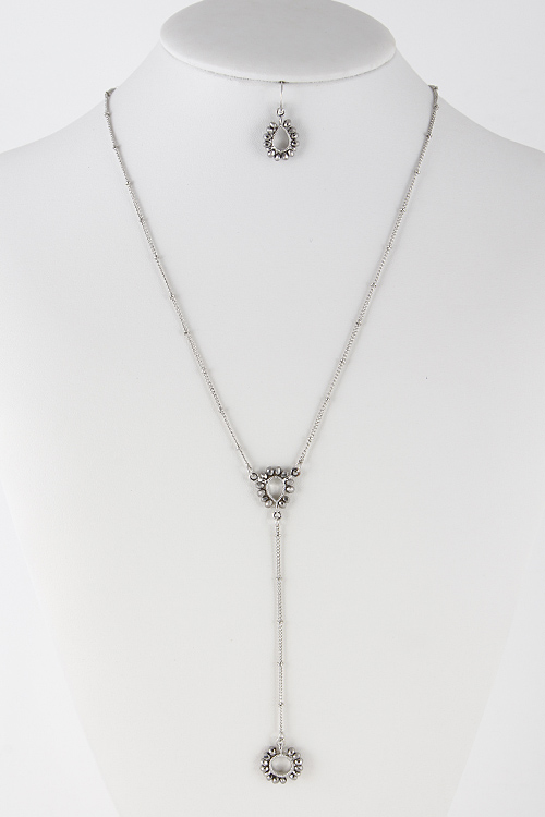 • * Circle Teardrop Cutout Bead Surrounded Pendant Necklace 5FBJ8 * 22 x 5.5" approx.