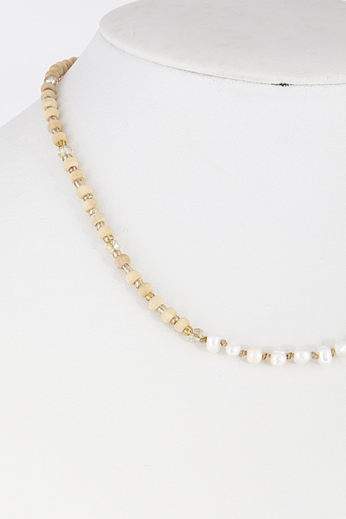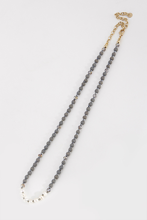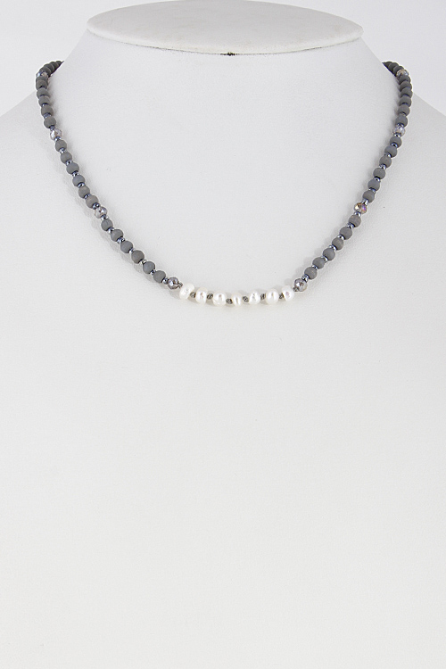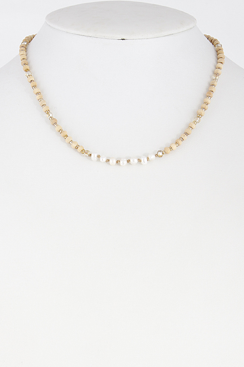 • * Simple Basic Bead Necklace With Faux Pearl 6DAJ10 * 15" approx