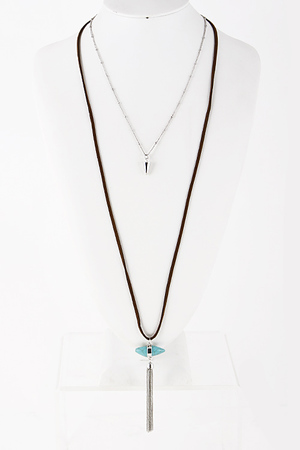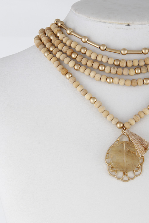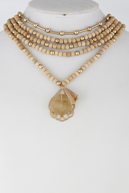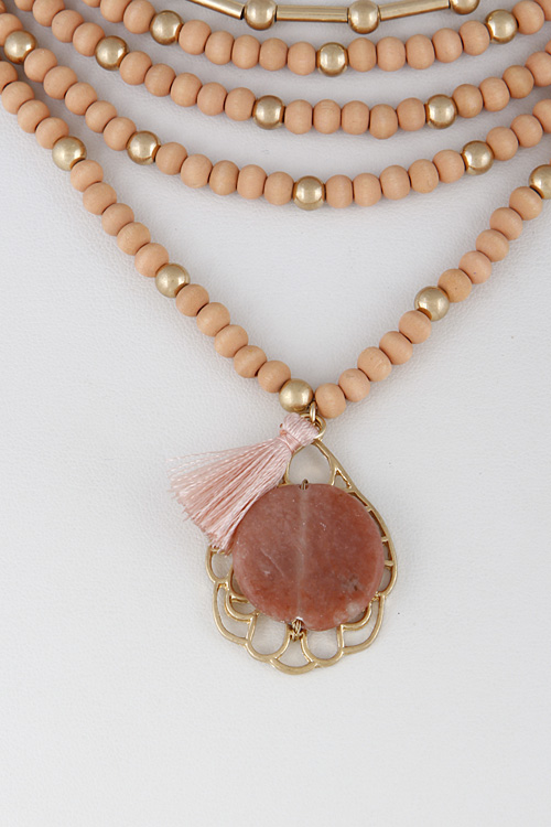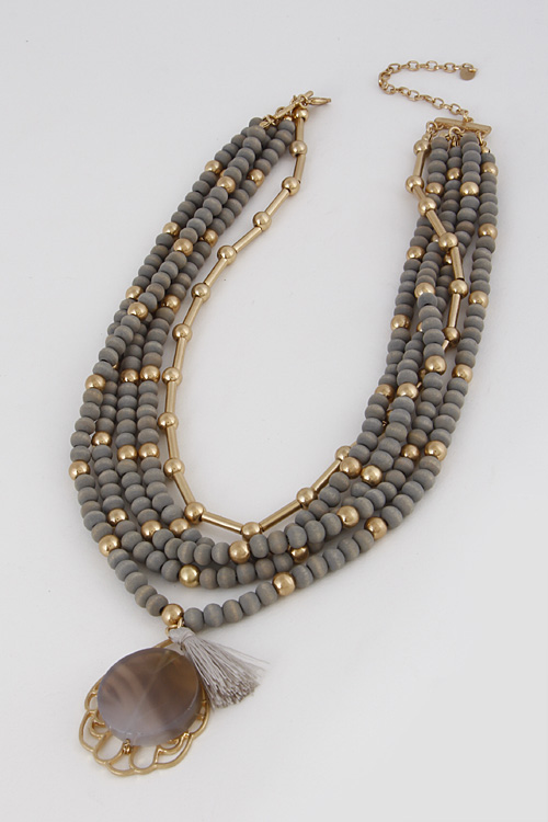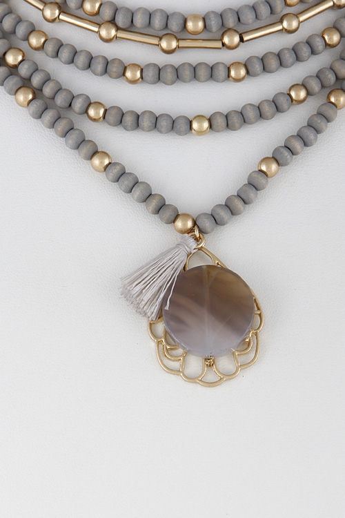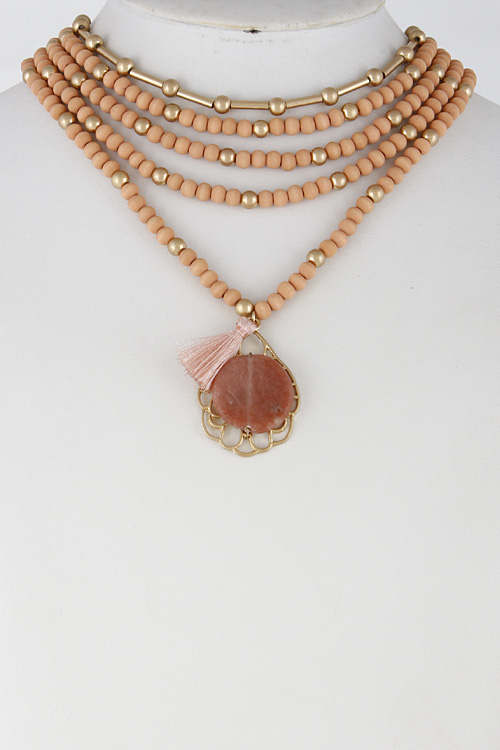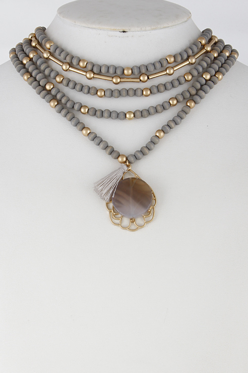 • * Multi Layered Bead Stone Necklace Set 6FCD4 * 16" approx.