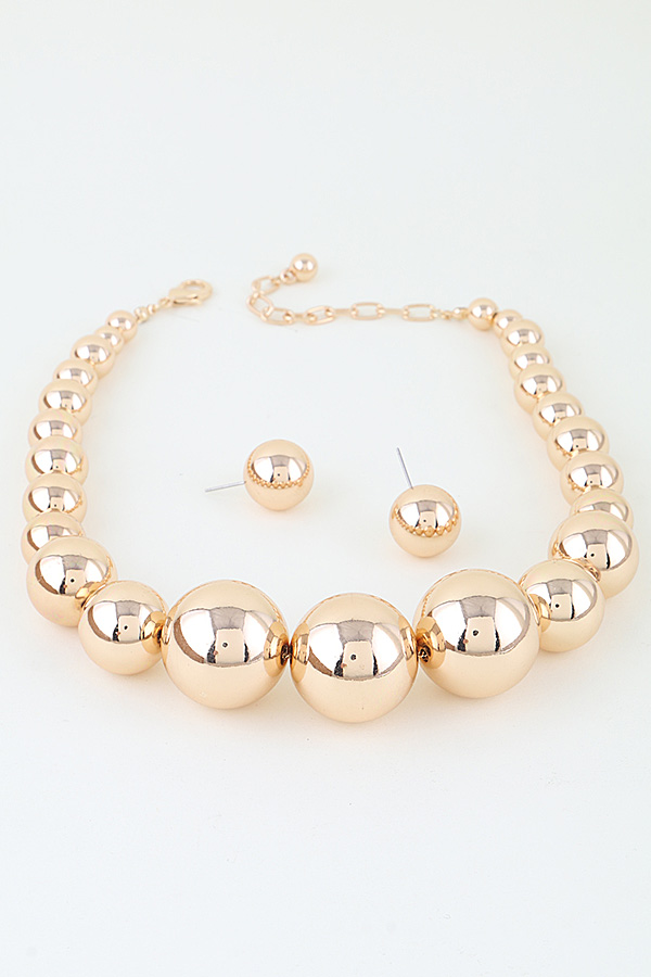 - * This Multi Polished Bead Statement Necklace from H&D Accessories features a bold, graduated design with large, glossy spherical beads, culminating in three prominent focal beads at the center, creating a voluminous, luxurious appearance. Its reflective, metallic design adds a glamorous, eye-catching element to any ensemble. Wear it to elevate a tailored blazer for a professional office look or to complement a formal gown at an evening gala. The sturdy construction ensures lasting wear, making it a striking choice for both casual and special occasions.