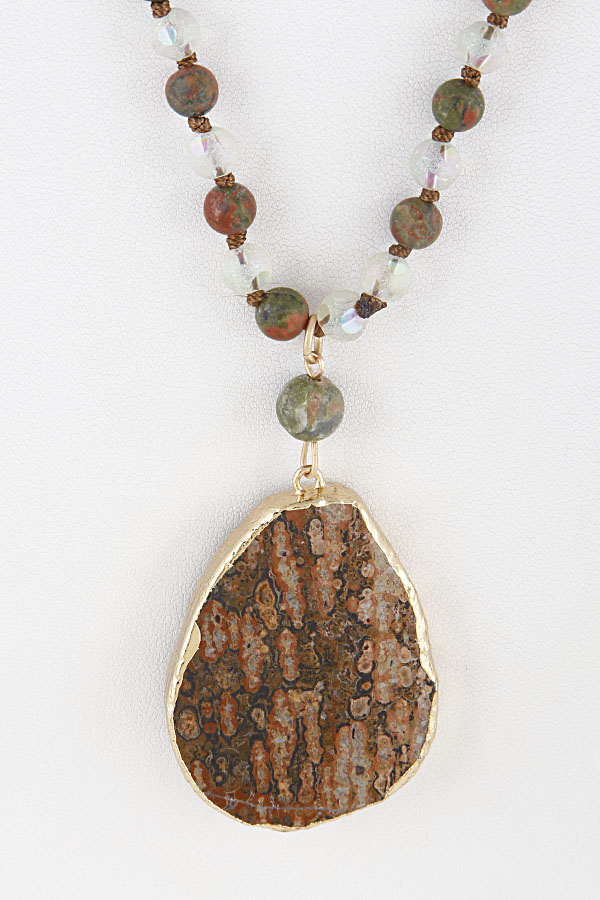 - * Precious Stone & Pearl Bead Long Necklace 8ACE3