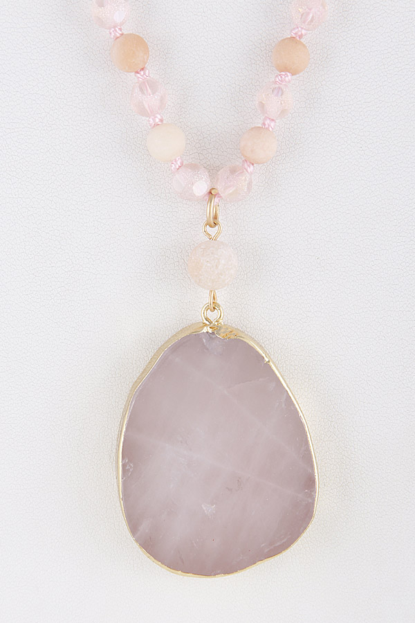 • * Precious Stone & Pearl Bead Long Necklace 8ACE3