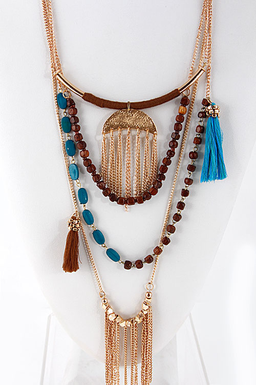 - * Two Tone Bead Chain Layered Statement Necklace 5DAH7 * 30" approx.