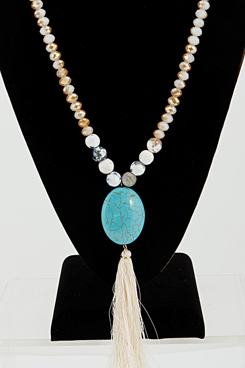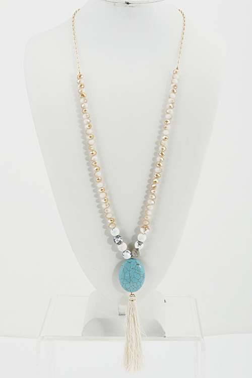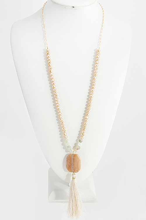 - *Mixed Bead Stone Long Necklace 5LCG1 * 30 X 5" approx.