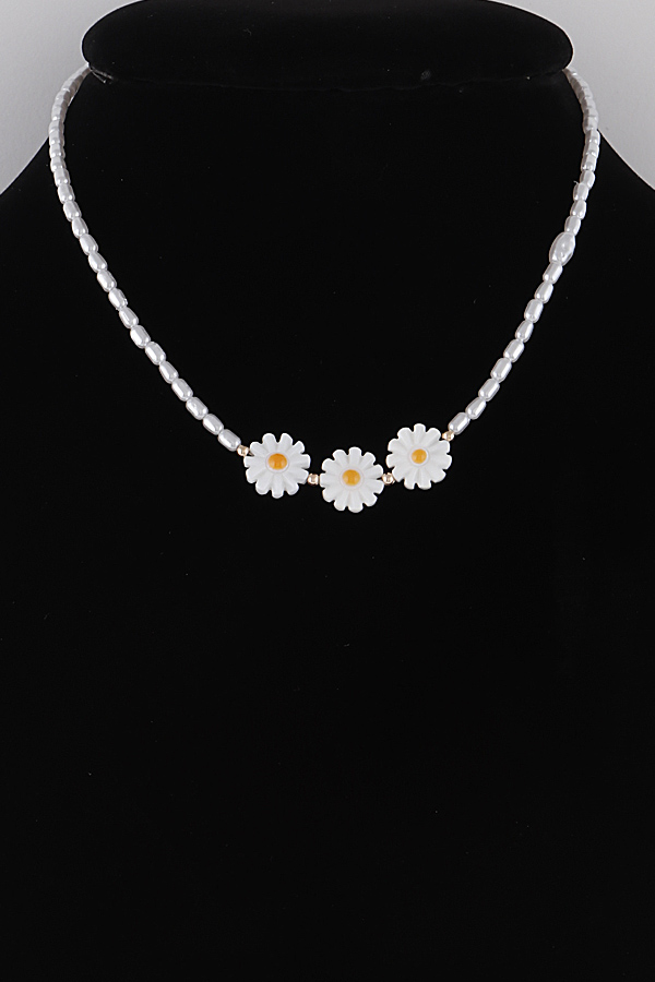 - * Beaded Flower Trio Necklace