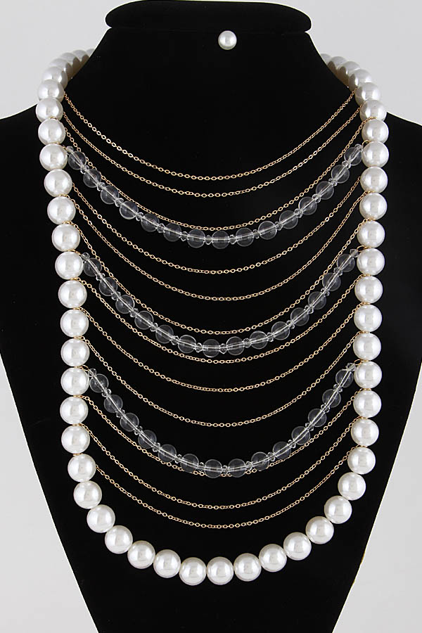- * Very Elegant Pearl & Stone Beaded Necklace 8ACB8