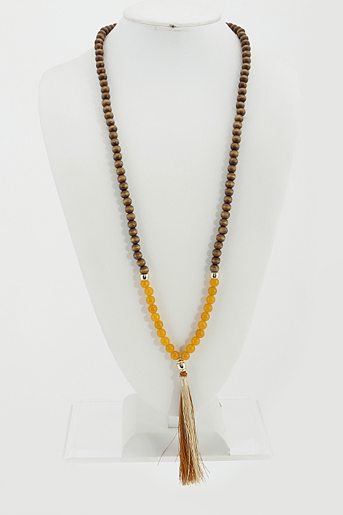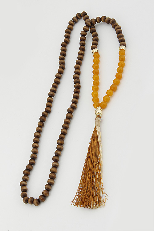- * Mixed Wood Prayer Bead Necklace . 6ABC4 * 32 x 5'' approx.