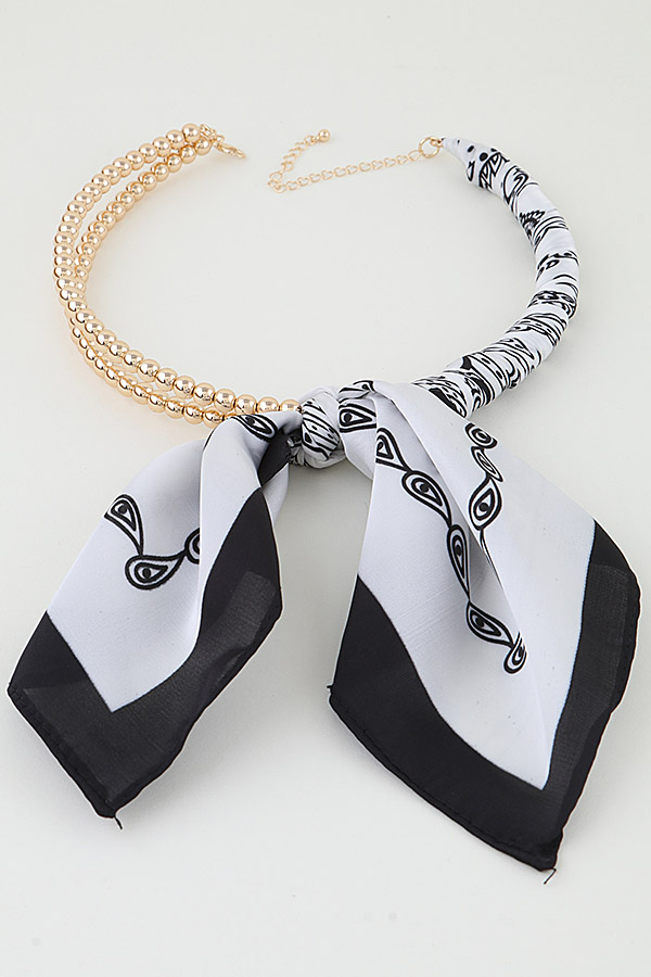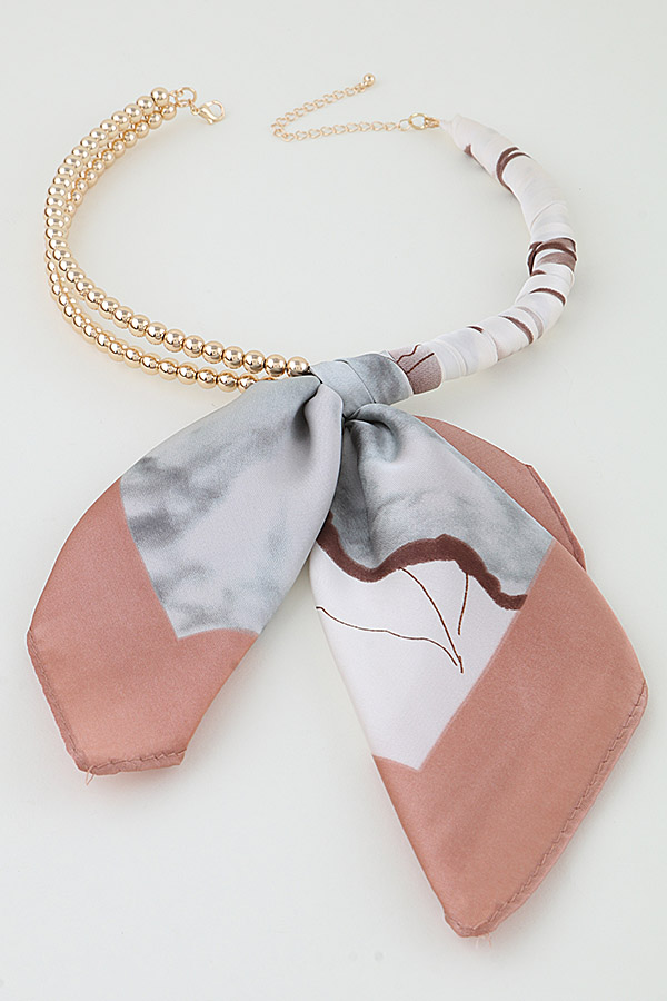 - * From H&D Accessories: the Half Scarf Wrap Beaded Necklace. It combines a lightweight scarf (styled in a neat knotted design) with a refined beaded chain section that sits comfortably around the neck. The scarf features a delicate pattern, while the beaded part adds subtle texture.Perfect for daily styling—pair it with blouses, dresses or casual tops to add a polished, layered accent to your ensemble.