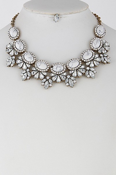 - * Rhinestone Patterned Formal Necklace Set 6GCE8 * 1.4 X 16" approx.