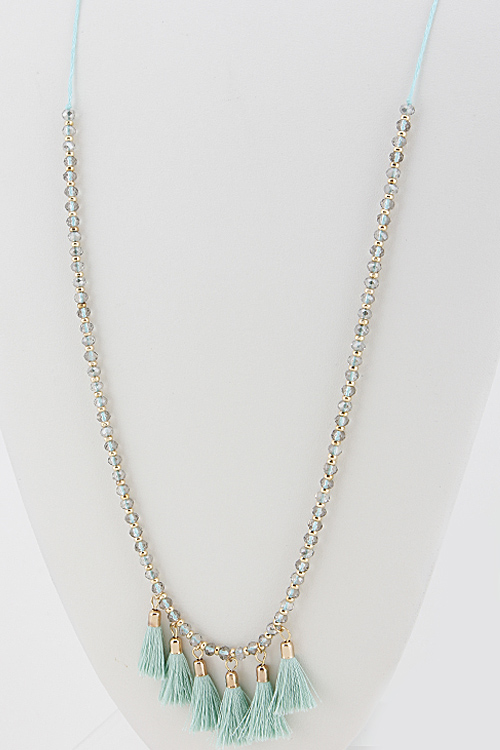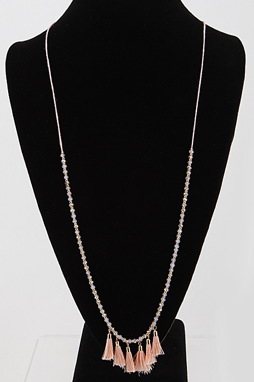 • * Long Bead Tassel Charm Necklace 5LAF1 * 30" approx.
