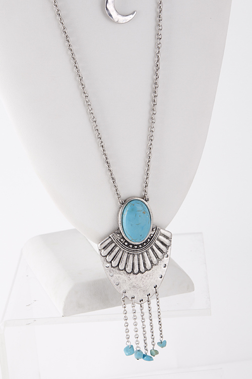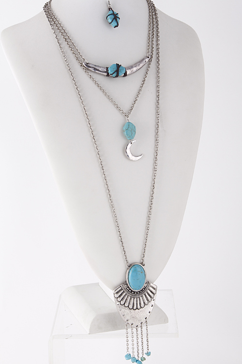• * Crescent Moon Bead Dangle Layered Necklace 5FAC2 * 41" approx.