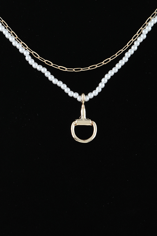 - * This Equestrian Drop Beaded Chain Necklace (From H&D Accessories) features a layered design: a strand of delicate beads paired with a slim chain. At its center hangs a classic equestrian-inspired drop charm (a polished metal ring detail), crafted for subtle, stylish accent. Ideal for daily wear—effortlessly elevates casual outfits or adds a refined touch to semi-formal looks. Lightweight and versatile, it’s a timeless piece blending understated elegance with equestrian flair.