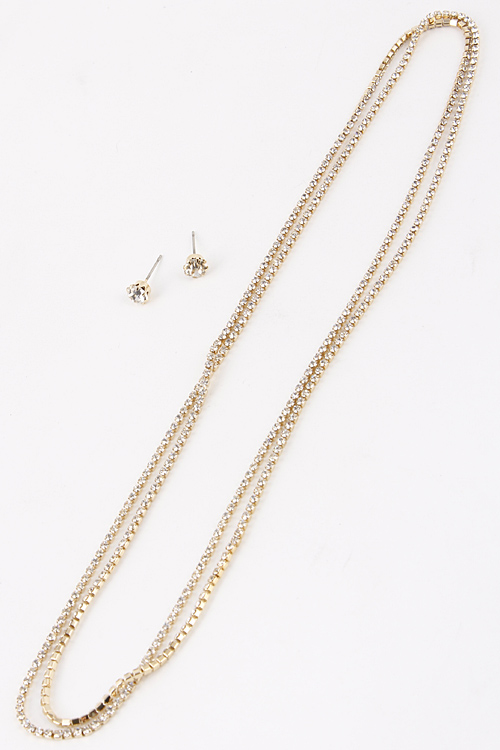- * Shorter Length Rhinestone Linked Necklace 5ADA11 * 38" approx.