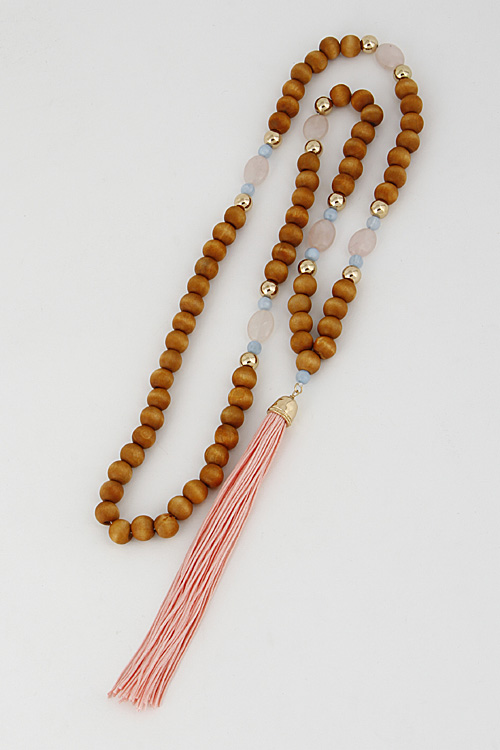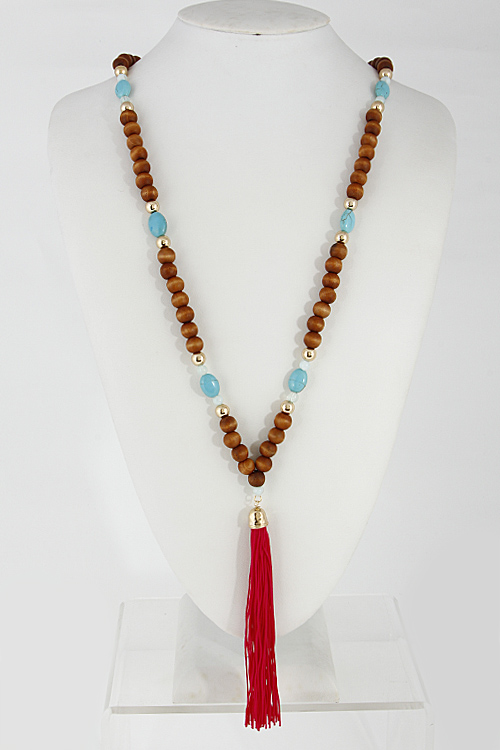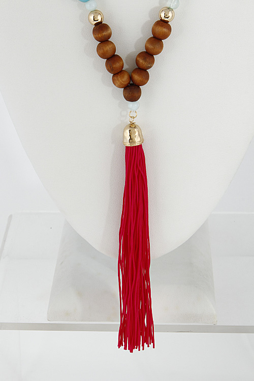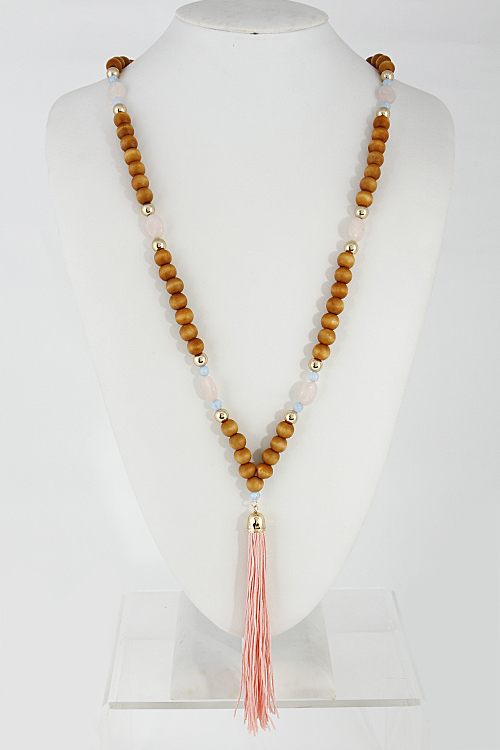 - * Long Bead Necklace With Tassel 6DCE8 * 28" approx.