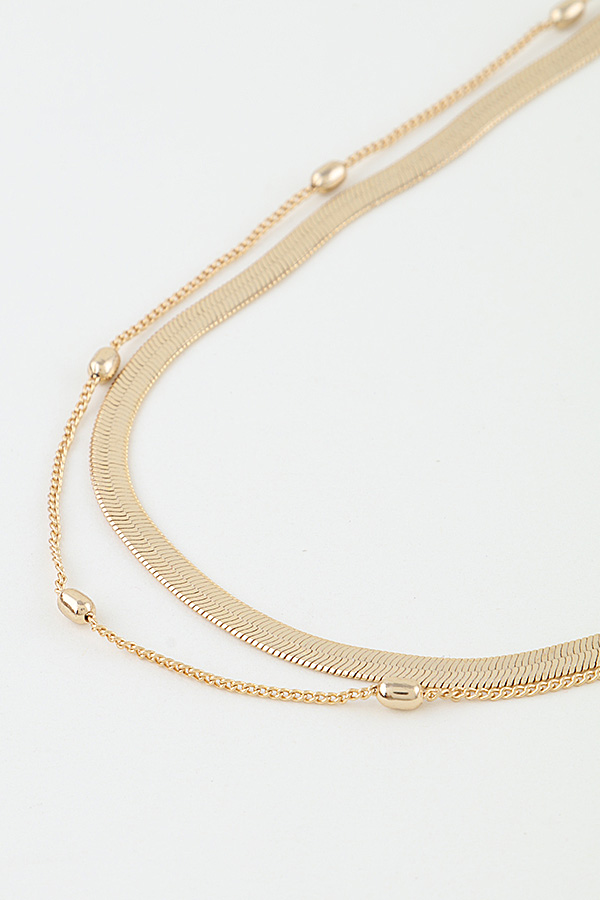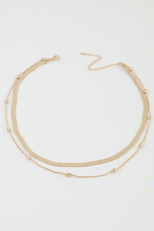 - * This Double Classic Chain Choker Necklace from H&D Accessories combines a sleek flat chain with a delicate beaded link chain in a double-layer design, offering a refined, minimalist silhouette. It adds an understated chic touch to a casual linen shirt for a daytime errand run or elevates a simple slip dress for an evening gathering, making it a versatile everyday staple.