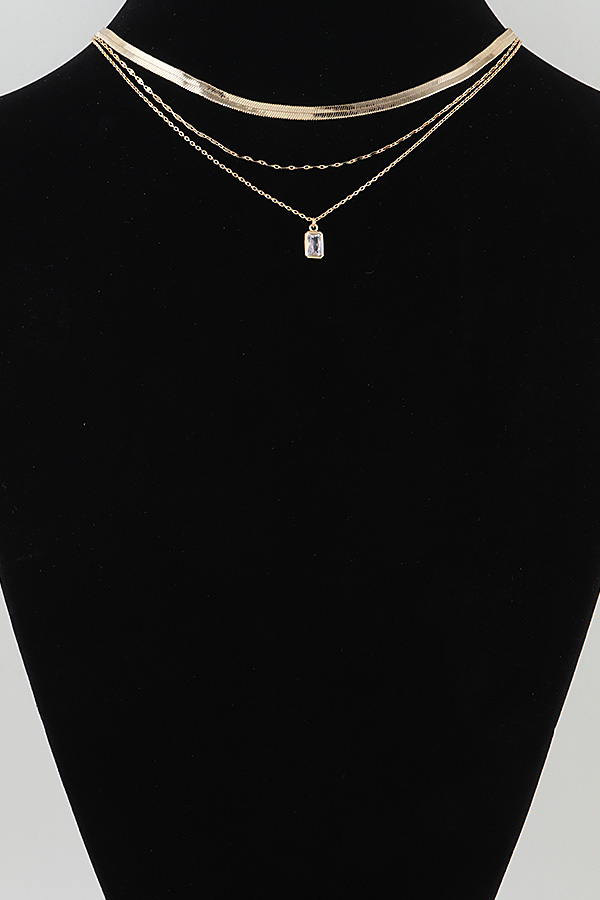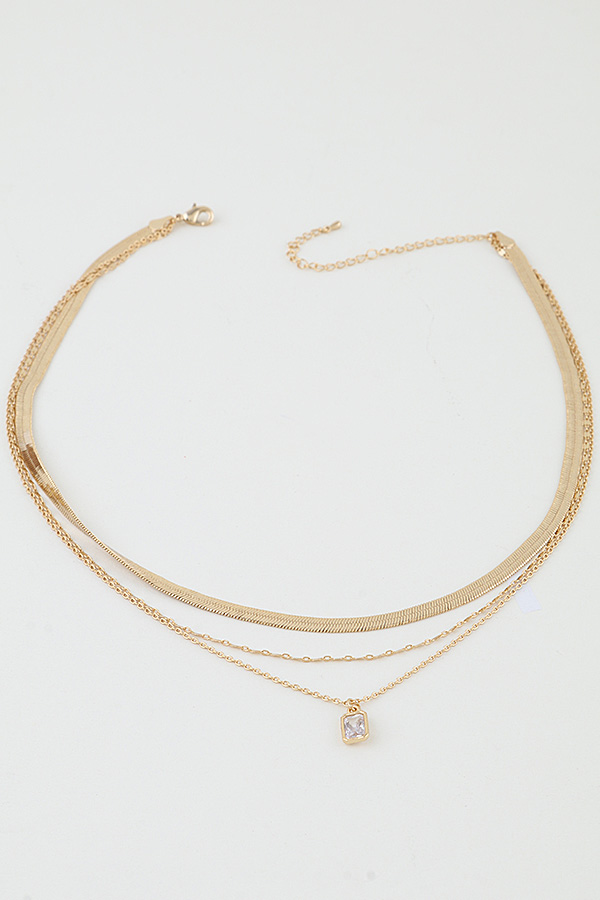 • * This Multi Bejeweled Cubic Rhinestone Necklace from H&D Accessories features a layered design with a sleek flat chain, delicate link chains, and a slim finishing chain that suspends a sparkling cubic rhinestone pendant, creating a refined, dimensional look. It adds a subtle touch of glamour to a casual knit top for a weekend brunch or elevates a minimalist camisole for an evening date, making it a versatile piece for both everyday and special occasions.